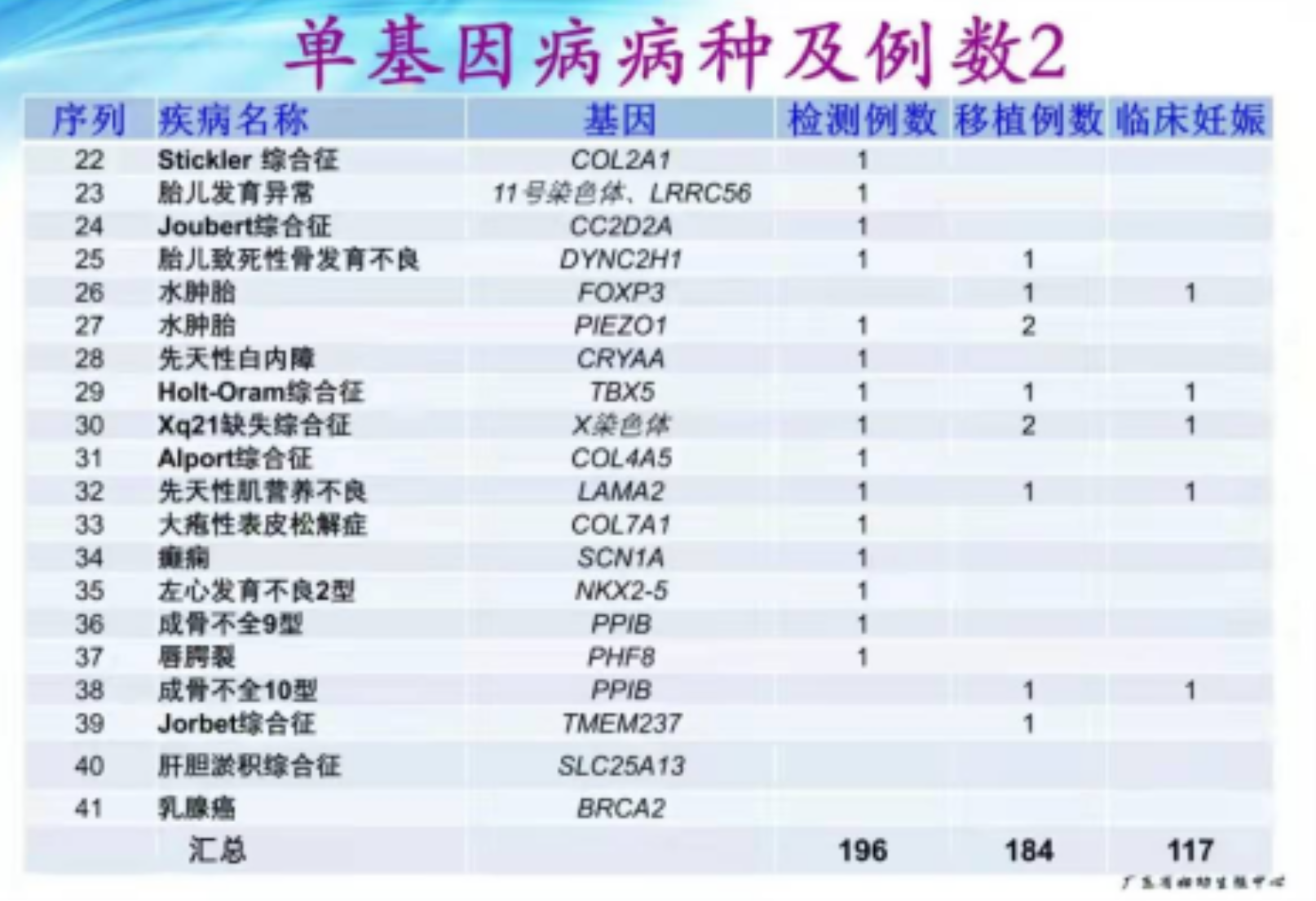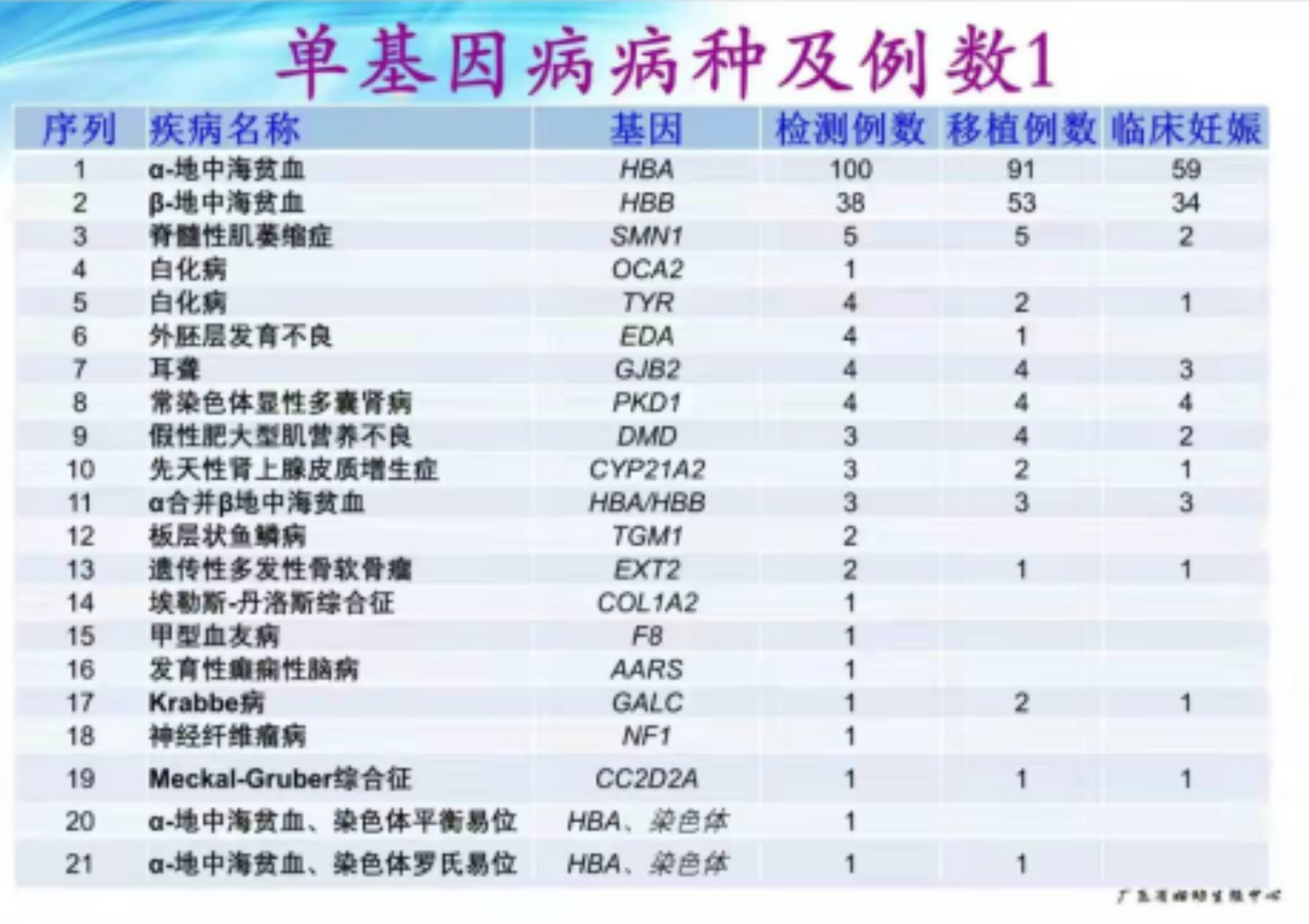 自2017年起,广东省妇幼保健院已经成功为40余种单基因病(见下图)患者提供了PGT-M治疗,共进行了300余个取卵周期,临床妊娠率达65%-70%,活产率达62%-65%。