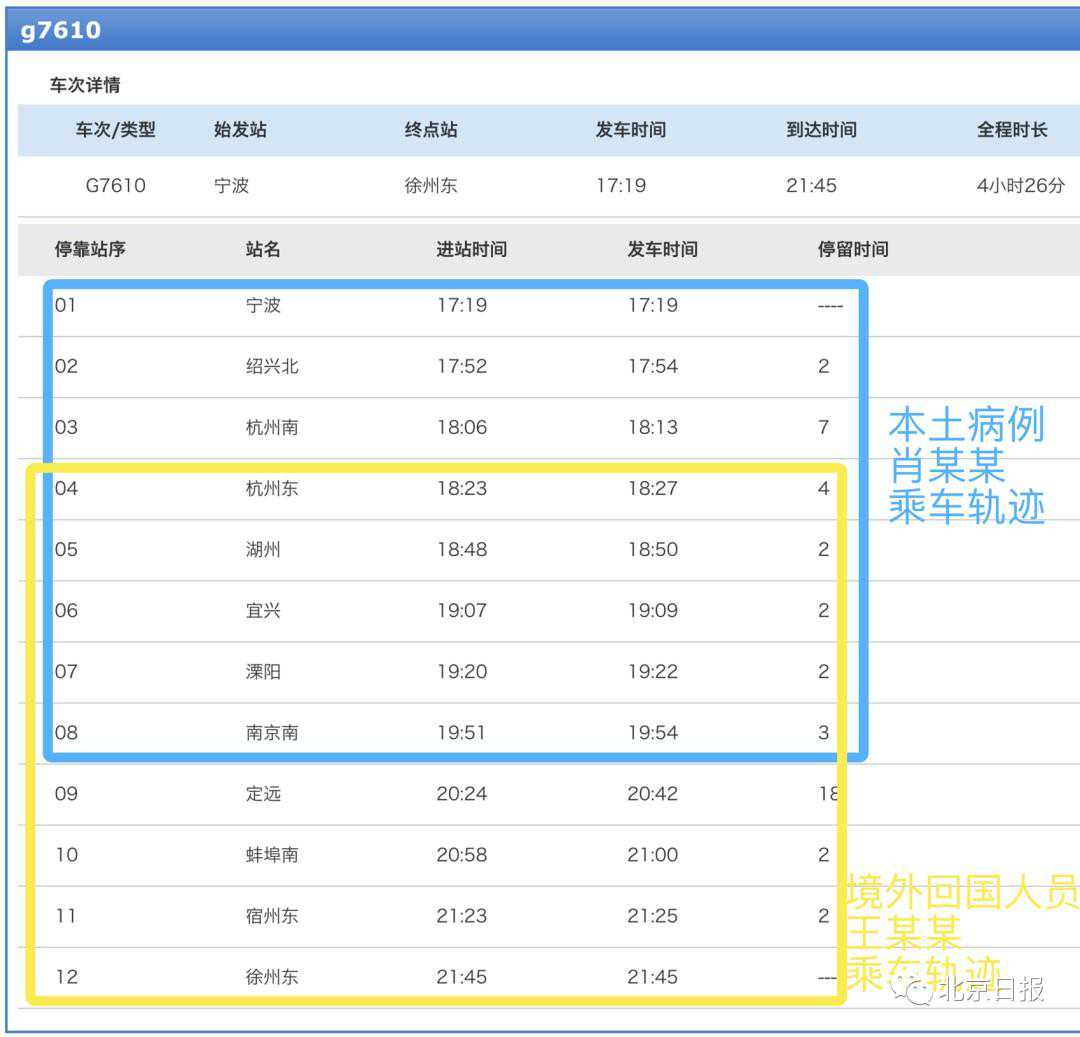 也是在7月12日,浙江宁波市卫健委发布一则关于江苏南京输入关联病例宁波活动情况的排查信息。通报中,对于南京阳性人员肖某在G7610列车上的轨迹进行了说明: