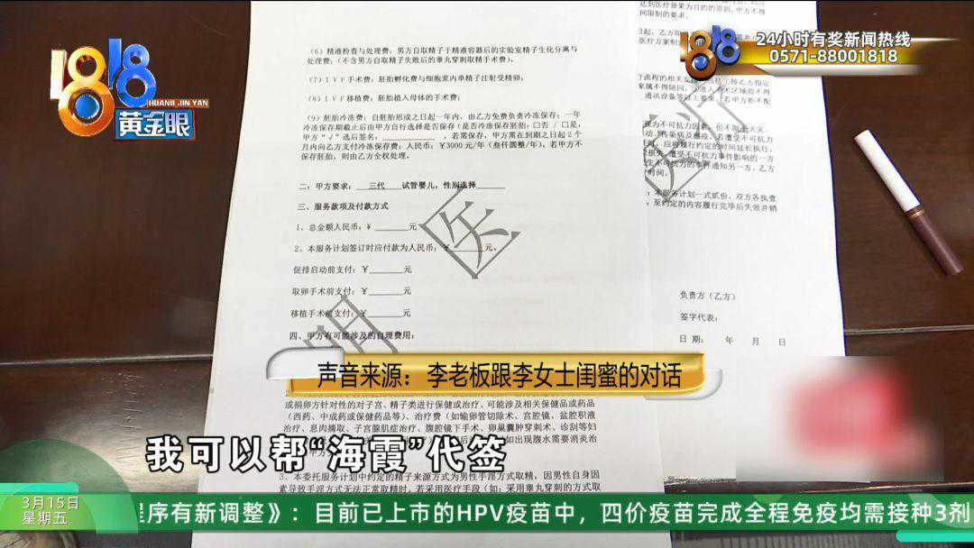李女士:她参与了取卵,并且还参与了取卵的手术,那她也没有证。而且她也知道你们的实验室在哪儿。