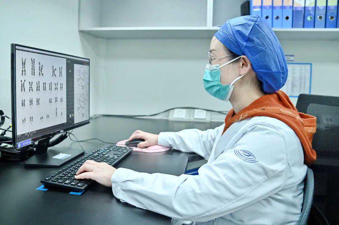 终于要出结果了,这是检验医师在审核染色体核型分析图。